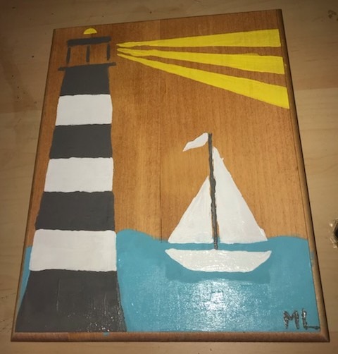 Wooden Plaque Sailboat Painting